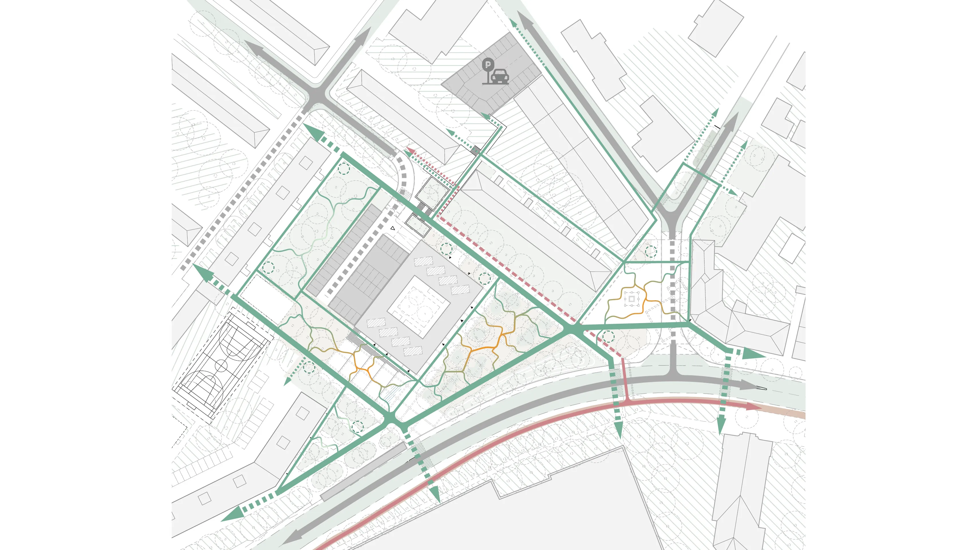 Návrh stavia na bezpečnosti, čitateľnosti a plynulosti pohybu, pričom rešpektuje existujúce urbánne väzby a prirodzene ich rozvíja.