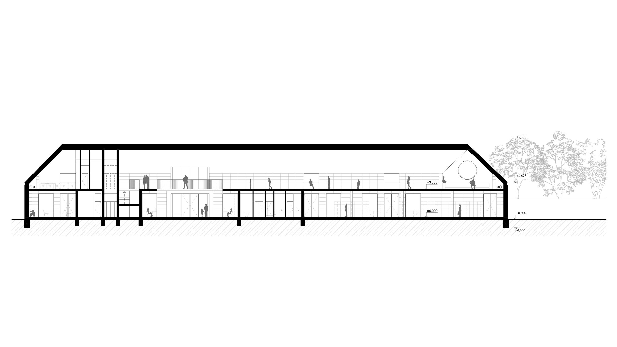 Samotný koncept je založený na maximálnom zachovaní pôvodnej vonkajšej konštrukcie a materiality jestvujúceho objektu. Interiér je očistený od vnútorných priečok a do stredu dispozície sú symetricky vložené betónové jadrá so zázemím, medzi ktorými sa nachádza vstupný vestibul otvorený cez dve podlažia.